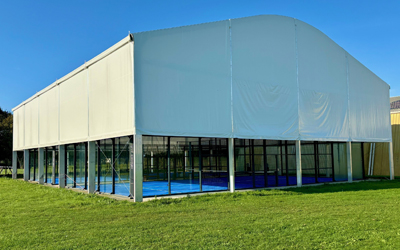Le groupe SAE a crée un concept de couverture pour terrains de sport ( structure porteuse en aluminium et en membrane textile). D'un design résolument moderne et novateur, les couvertures ECLIPSE® vous sont proposées "clé en main."