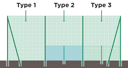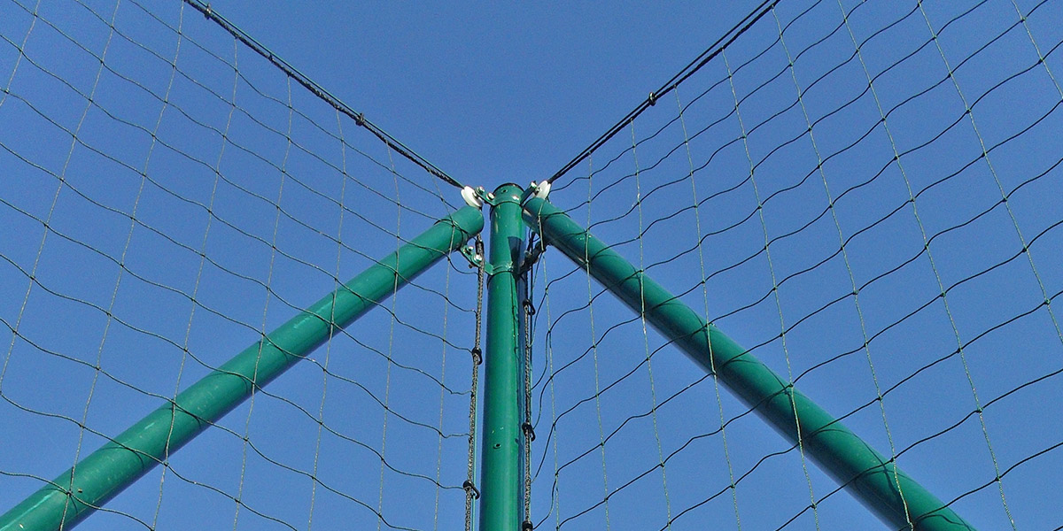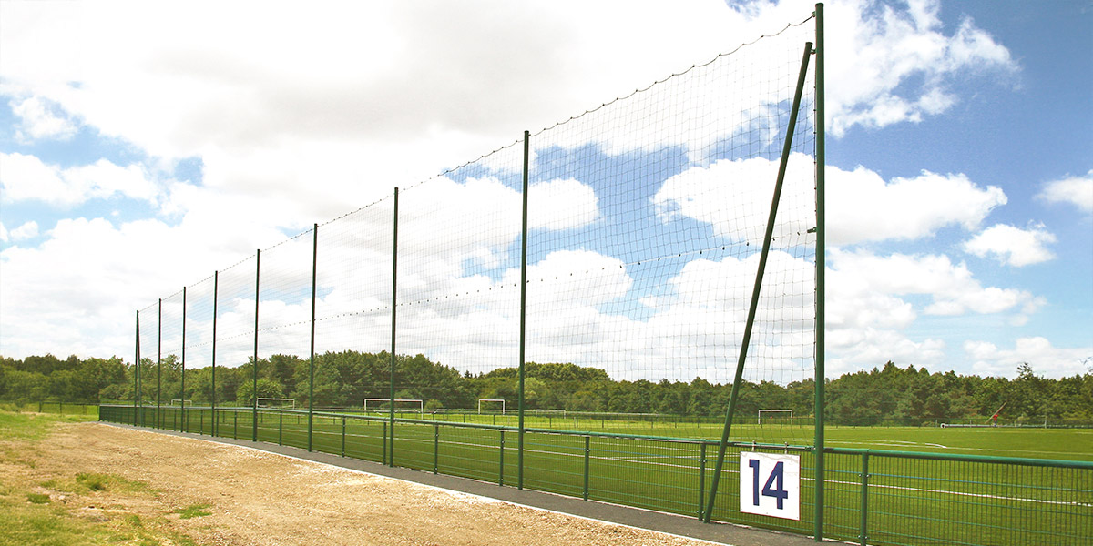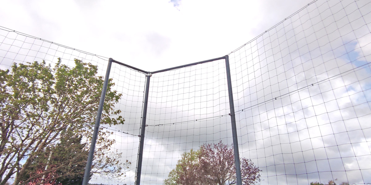 Pare-ballons avec filet polyéthylène maille carrée nouée de 145mm sur toute la hauteur.