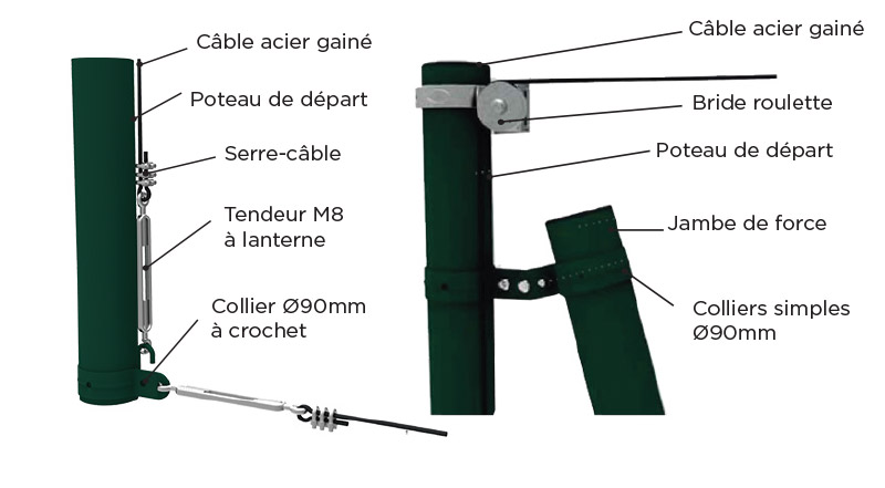 Poteaux avec boulonnerie et câblage.